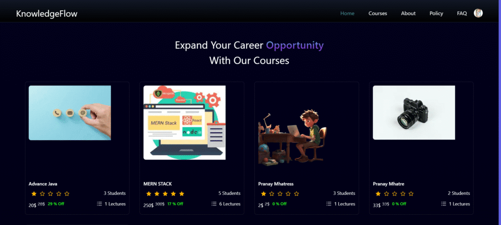 - Developed an LMS with adaptive learning capabilities to tailor individualised learning experience and enhance learning. Implemented features such as learning roadmap generation, collaborative online study meets, and course recommendations.